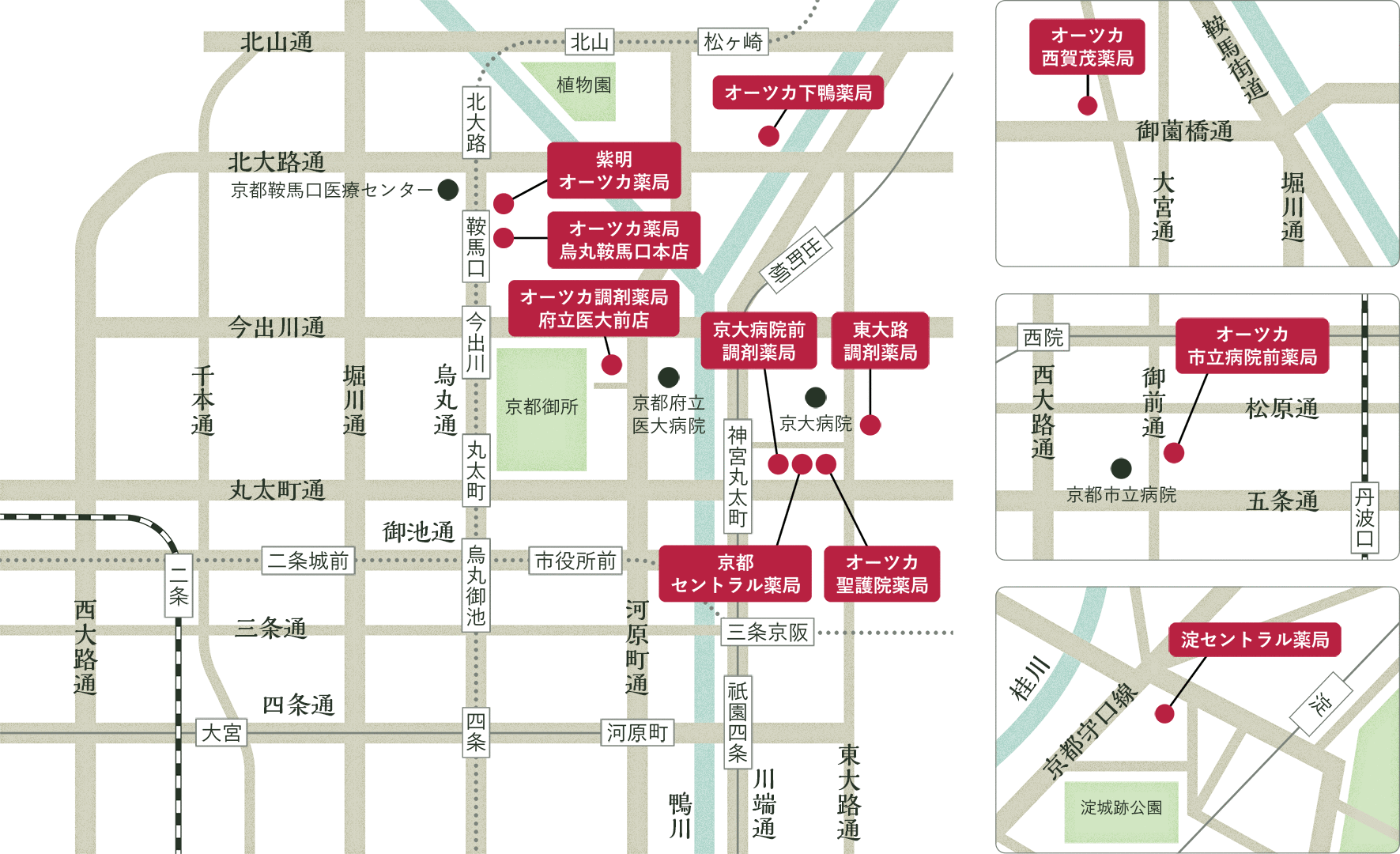 | オーツカ薬局 烏丸鞍馬口本店 | 603-8147京都市北区烏丸通鞍馬口上る上御霊上江町232-1 TEL:075-441-0535FAX:075-431-6120 |